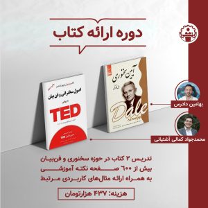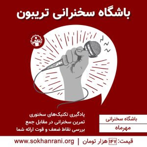 دوره جامع آموزش گویندگی 140424 ساعت | 5 هفته 9,700,000تومان اطلاعات بیشتر دوره سهگانه تحول 140424 ساعت | حضوری 3,870,000تومان اطلاعات بیشتر باشگاه سخنرانی آنلاین آذرماه 14043 ساعت 149,000تومان اطلاعات بیشتر شرکت در کلاسهای آنلاین آبان ماه 14048 ساعت 475,000تومان اطلاعات بیشتر تابآوری در عمل3 ساعت 386,000تومان اطلاعات بیشتر شرکت در کلاسهای حضوری 9 آبان8 ساعت 950,000تومان اطلاعات بیشتر باشگاه سخنرانی آنلاین آبانماه 14043 ساعت 148,000تومان اطلاعات بیشتر تغییر عادت4 ساعت 386,000تومان اطلاعات بیشتر شرکت در کلاسهای حضوری (مخصوص دوره آنلاین)4 ساعت 247,000تومان اطلاعات بیشتر دوره ارائه کتاب4 ساعت 437,000تومان اطلاعات بیشتر باشگاه سخنرانی آنلاین مهرماه 14043 ساعت 147,000تومان اطلاعات بیشتر اهمالکاری3 ساعت 186,000تومان اطلاعات بیشتر