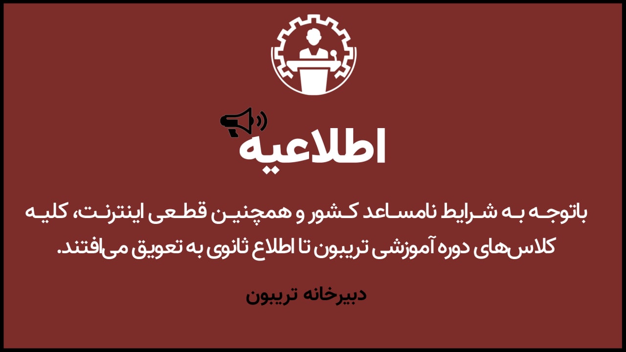 ⭕️ باتوجه به شرایط پیش آمده و قطعی مکرر اینترنت در سراسر کشور و همچنین درخواست مکرر شما، کلاس‌های ۳۱شهریور و ۱مهر لغو خواهند شد.
