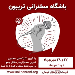 آموزش سخنوری و فن بیان تخصص اصلی تریبون است و سالهاست در کنار برگزاری مسابقه کشوری سخنرانی تریبون، دورههای آموزشی به صورت عملی و کارگاهی با قیمت مناسب و کیفیت خوب و با تدریس بهترین استادان و مدرسان کشور برگزار مینماید. مهارتهایی مانند زبان بدن، لحن و تن صدا، فن بیان، بداههپردازی، طنز، کنترل استرس و افزایش اعتماد به نفس، ساختار سخنرانی، مخاطبشناسی، اسلایدسازی، اتیکت و پرسنال برندینگ، مدیریت زمان سخنرانی، هوش کلامی و…